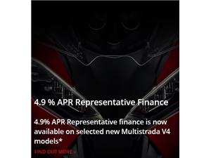Read More4.9% APR Representative finance is available on selected new Multistrada V4 models with the Multistrada V4 from £149 per month plus deposit and optional final repayment