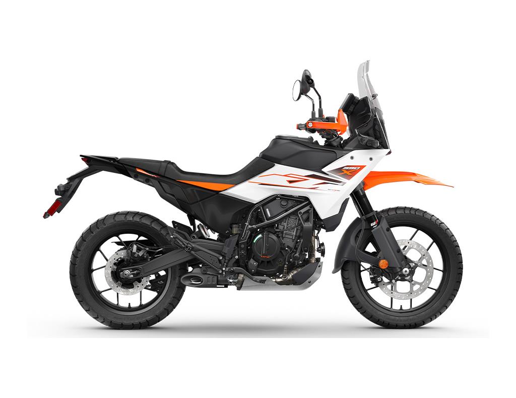 " />The KTM 390 ADVENTURE X boasts cast wheels at each end with a 17" rear and 19" front, making it ideal for life on the street and when hitting gravel tracks.