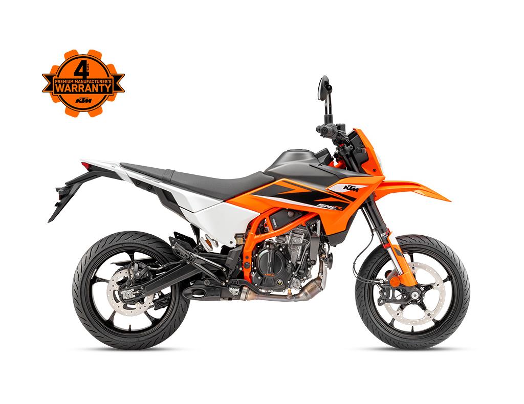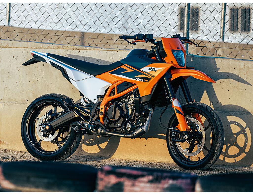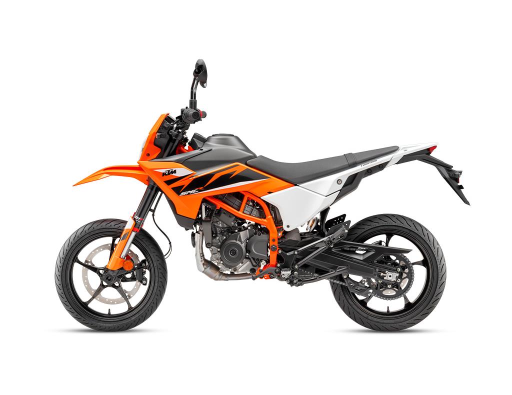 The KTM 125 SMC R comes with premium looks and a striking graphic design as standard. Thanks to top-tier in-mold graphics, it not only looks the part but can also handle anything the outdoors throws at it.