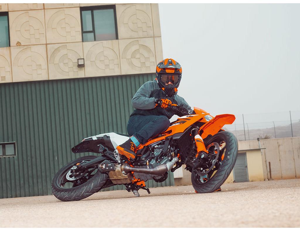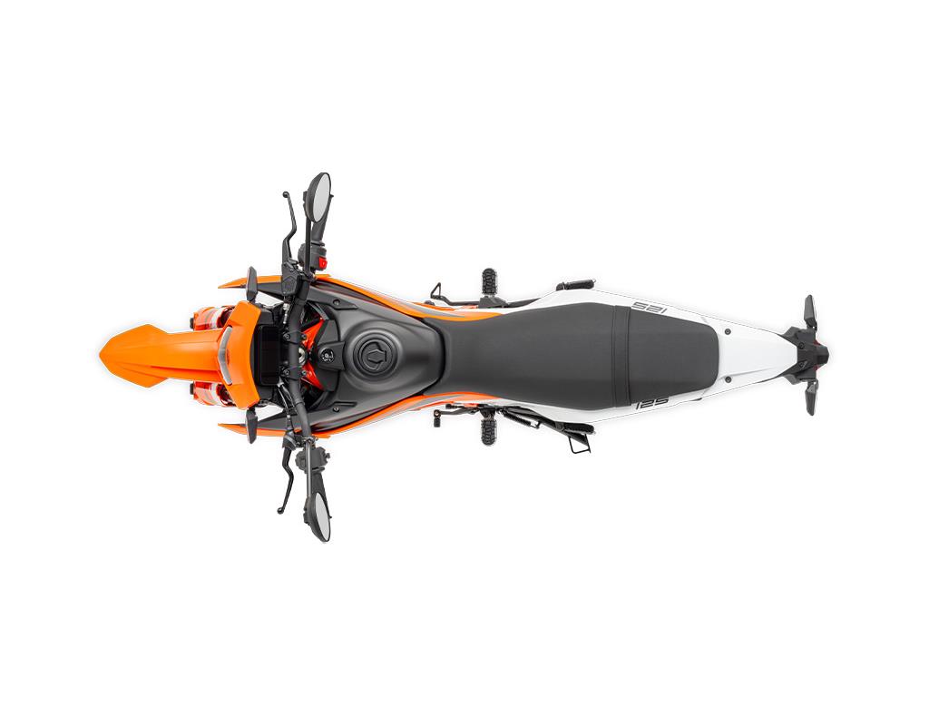 Taking inspiration from the KTM EXC range but with added comfort for longer commutes or trips, the KTM 125 SMC R has a new 860 mm single-piece flat seat design for easy on-board mobility and getting low into an apex.