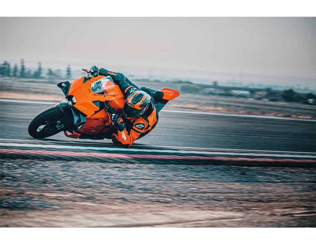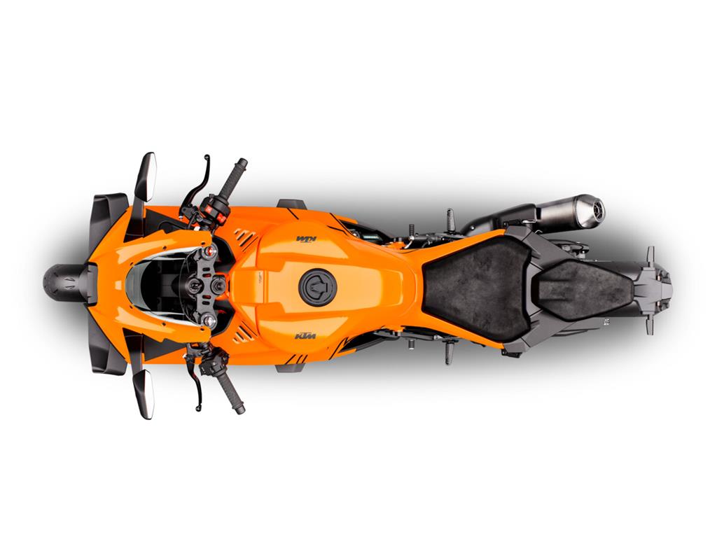 Be what you want it to be, be what you want to be. A pure-bred Supersport motorcycle like the KTM 990 RC R is a rare piece of high-tech clay, waiting to be shaped and customized for road or race. From the fully adjustable WP APEX front suspension to the movable footpegs and to the myriad of Ride Modes and settings as well as a gallery of KTM PowerParts accessories and additions, the choice is vast when it comes to dialing in the ideal sport-focused set-up. Commitment is the final ingredient to power ahead of the pack.