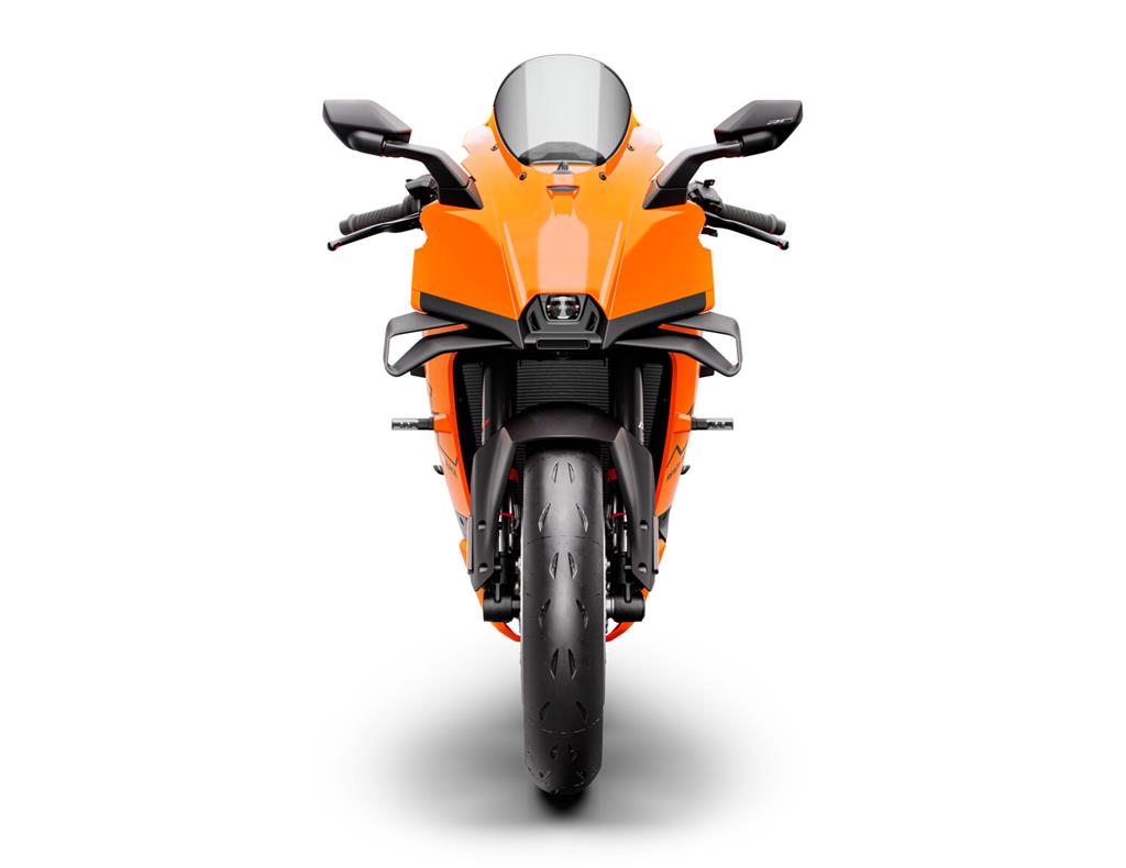 The KTM 990 RC R design language is singular and unmistakable. Turn on the TV during 22 weekends of the year and the aerodynamic and performance-thinking profiles of the KTM RC16s on the MotoGP grid will hit a chord. Mask shape, belly wings, and the wings on the front: they all look striking but also help with cooling and downforce, and therefore stability and braking performance. In terms of looks, is there a more razor-focused option on two wheels? Breathe it in. And would you like it in Electronic Orange or Black Metallic?