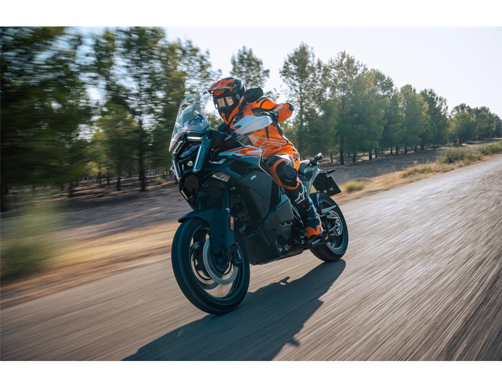 Equipped with a comprehensive suite of cutting-edge technology as standard, including Motorcycle Traction Control, Cornering ABS, customizable ABS modes, KTM Connect, multiple Ride Modes, Tire Pressure Monitoring System, Keyless System, and Cruise Control.