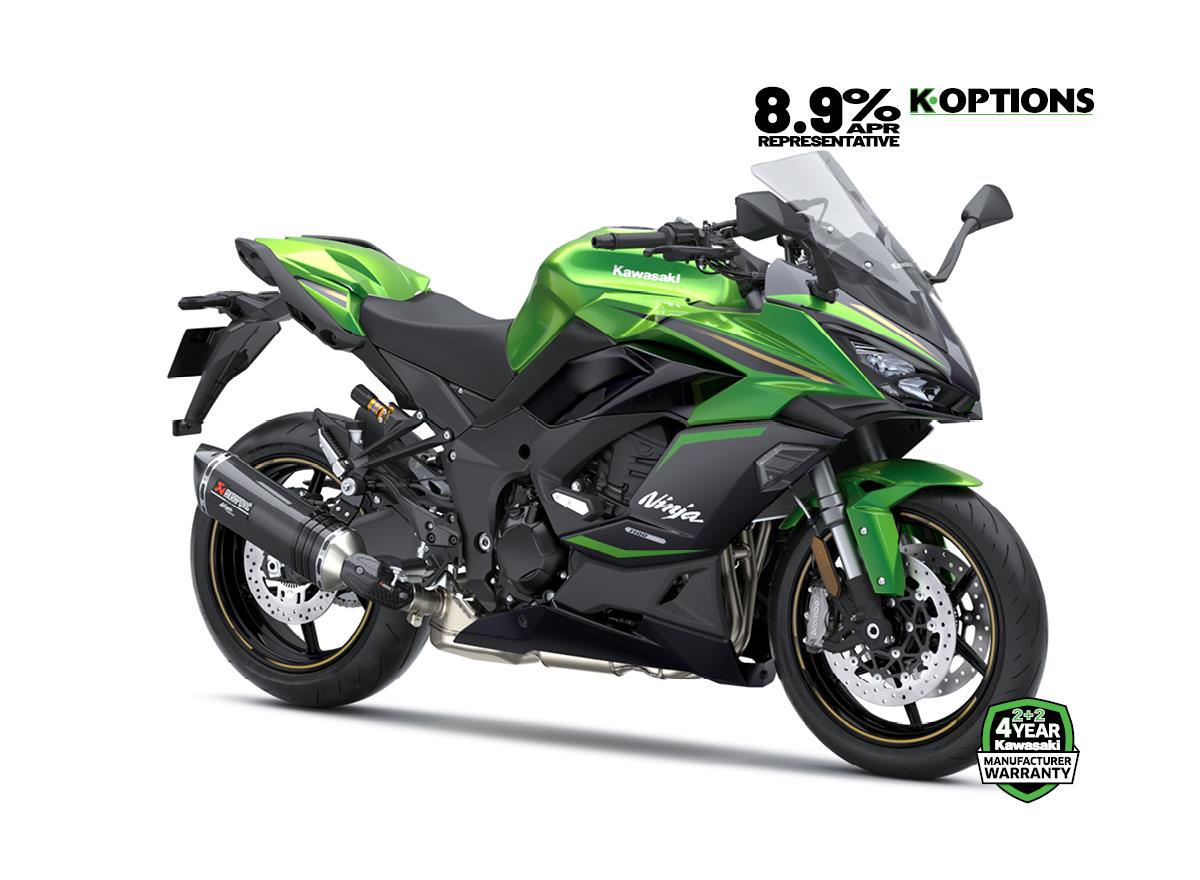 The new Ninja 1100SX offers the ultimate in sport touring ability. Created to deliver high performance, advanced technology, and superb comfort for sports riding and all-day touring, the Ninja 1100SX sets a new standard for sport touring performance. Colour Options UK: Emerald Blazed Green + Metallic Diablo Black - £15099 Metallic Matte Graphenesteel Gray + Metallic Diablo Black - £15099